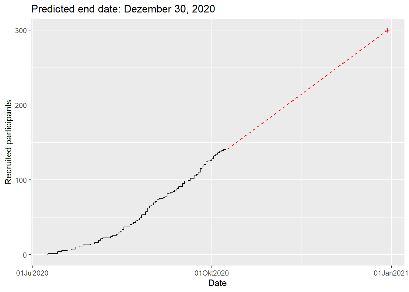 accrualPlot is an R package for summarizing trial recruitment data. With relatively little code, it is possible to create various plots and tables useful for recruitment reports, as well as predict the end of recruitment based on the recruitment to date.